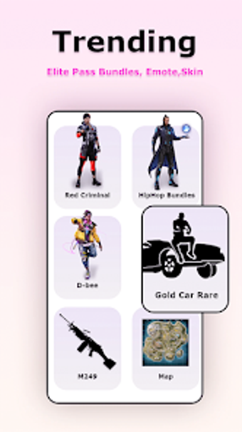 استمتع بالمرح مع FFF Skin Tool Diamond Elite Pass، الذي يتضمن جلودًا رائجة وباقات Elite Pass وجلود أسلحة أسطورية ورموز نادرة، ومجموعة متنوعة من Mod Skins لعناصر اللعبة المختلفة. إخلاء المسؤولية: هذا التطبيق ليس مقصودًا للغش أو الاختراق للحصول على عناصر داخل اللعبة مجانًا ولا يقوم بجمع معلومات المستخدم الشخصية. تم تطويره لأغراض الترفيه فقط.